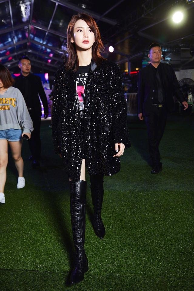 戚薇亮片外套搭長靴,正看帥氣側看嫵媚女人,